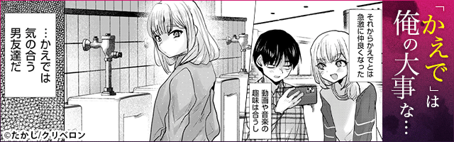 大学に入学後、学部の飲み会に参加していた男子・横瀬。しかし周りの元気すぎるノリについていけず、一人寂しい時間を過ごしていました。 そんな横瀬でしたが、同じく人混みを避けてきた同級生・久米川かえでと仲良くなります。この出会いがきっかけで、横瀬はかえでと頻繁に話すように。 趣味や好きな物の共通点が多く、可愛いかえでに恋心を抱き始めた横瀬。しかしかえでが男であることを知り、仲の良い男友達として関係を構築していきます。 そんなある日、かえでがサークルの先輩たちと絡み始めたことをきっかけに、関係が変わり……。